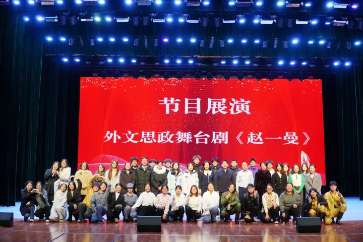 汇报会尾声,学子自编自演的外文思政舞台剧《赵一曼》精彩上演,以英语重现烈士坚贞不屈的英雄事迹,实现思想引领与艺术熏陶的同频共振。